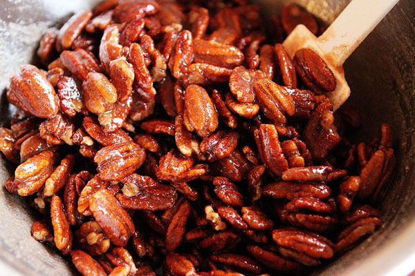 4. Spread pecan mixture on baking sheet and bake 15 to 18 minutes.