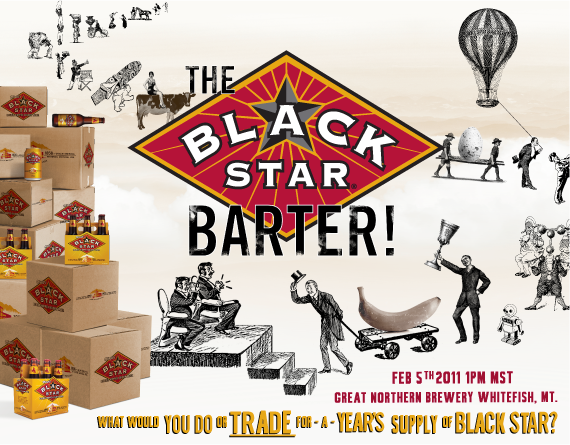 What would you do or trade for a year’s supply of Black Star Beer? Black Star invites you to participate in The Black Star Barter on February 5, 2011 at 1:00PM MST at the Great Northern Brewery in Whitefish, MT. The Black Star Barter, held in front of the Great Northern Brewing Company, downtown Whitefish, MT on February 5th, 2011. A crowd of 1000 spectators [...]